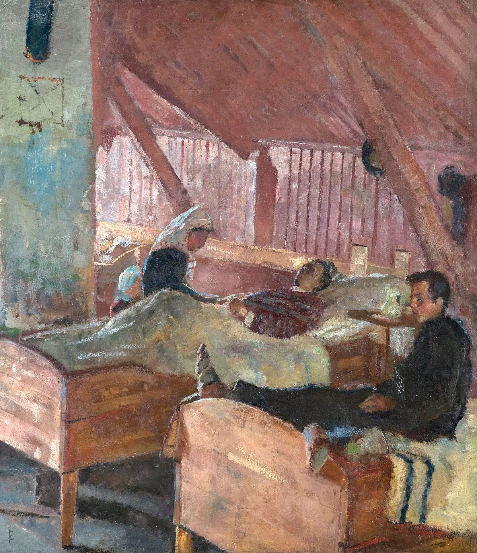 Edvard Munch: The Infirmary at Helgelandsmoen, 1884, oil on board. Munch Museum, Oslo, Norway. PD-US.